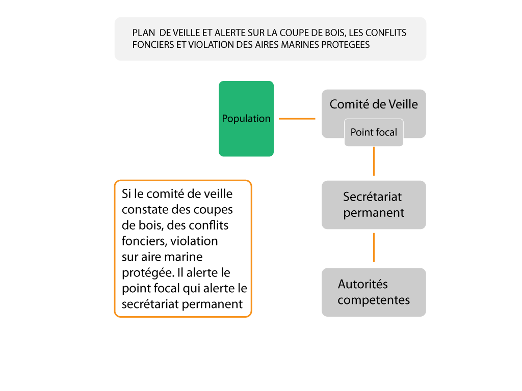 • Pour la lutte contre le trafic de bois engager les membres des comités de veille ainsi que du Secrétariat Permanent à lutter contre le trafic de bois en partenariat avec les autorités locales.